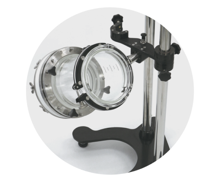 Vessels can be rotated 360° in the stand using the vessel swing/rotation mechanism.