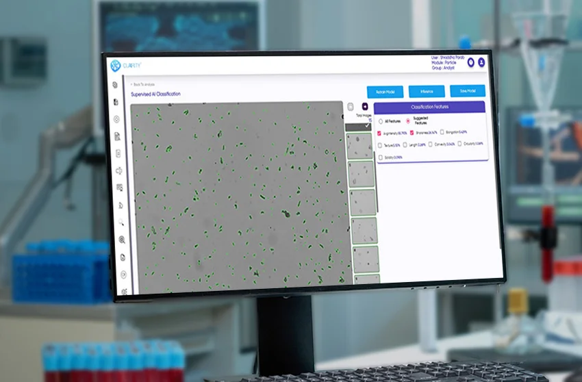 CLAIRITY™ Morphowiz is an intelligent image-analysis module designed to enhance particle characterization using machine learning. It leverages AI to classify particle populations based on morphological features such as circularity, aspect ratio, texture, and solidity. This allows scientists to go beyond simple size distribution and gain deeper insights into formulation quality, component differentiation, and impurity profiling.