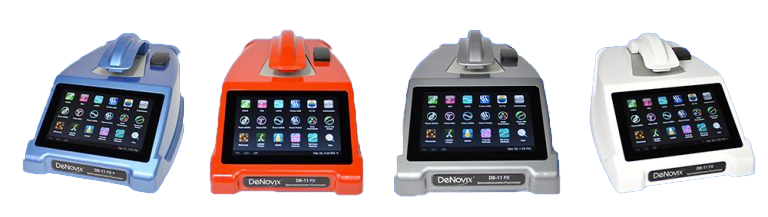 - Four user-selectable LED light sources – compatible with all commonly used quantification assays e.g. DeNovix assays, Thermo Fisher Qubit™ assays, Thermo Fisher Quant-iT™ assays, and Promega Quantifluor™ assays