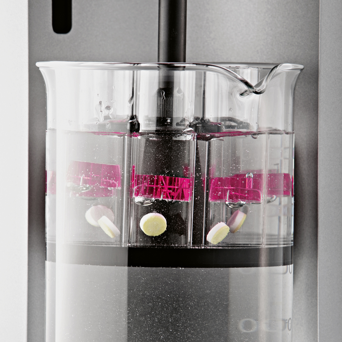 Residual heights of capsules and other dosage forms that do not disintegrate completely can simply be programmed individually for different capsule types and sizes. Innovative electromagnetic detection technology allows the DT50 to automatically determine the remaining dosage height with every upward stroke.