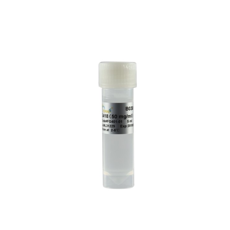 G418 is an aminoglycoside antibiotic, which blocks polypeptide synthesis by interfering with the function of 80S ribosome. Due to its toxicity on prokaryotic and eukaryotic cells (including bacteria, fungi, plants and mammalian cells), it is widely used as a selective reagent for stable cell line construction. The resistance mechanism is based on that resistance gene (Neomycin) specifically express aminoglycoside phosphotransferase, which confers resistance on cells. Thus cells are able to grow in selective culture medium containing G418.