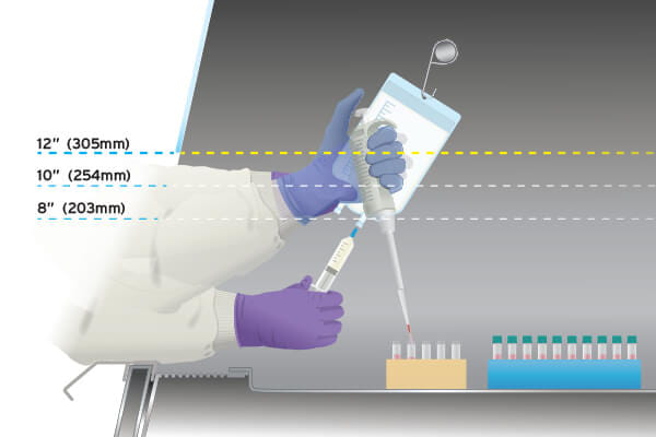 A choice of 8, 10, and 12 inch (203, 254, and 305mm) work access openings that are NSF approved allow the user to configure their biosafety cabinet for their specific application while remaining confident of certified containment.