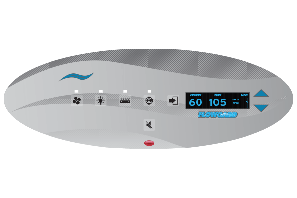 The FlowGard control system calculates inflow velocity based on the data received from the exhaust airflow sensor and displays it on the front screen. Alphanumeric readouts, nearby membrane buttons, and a choice of 6 world languages all make navigating this system's user and service menus easy.