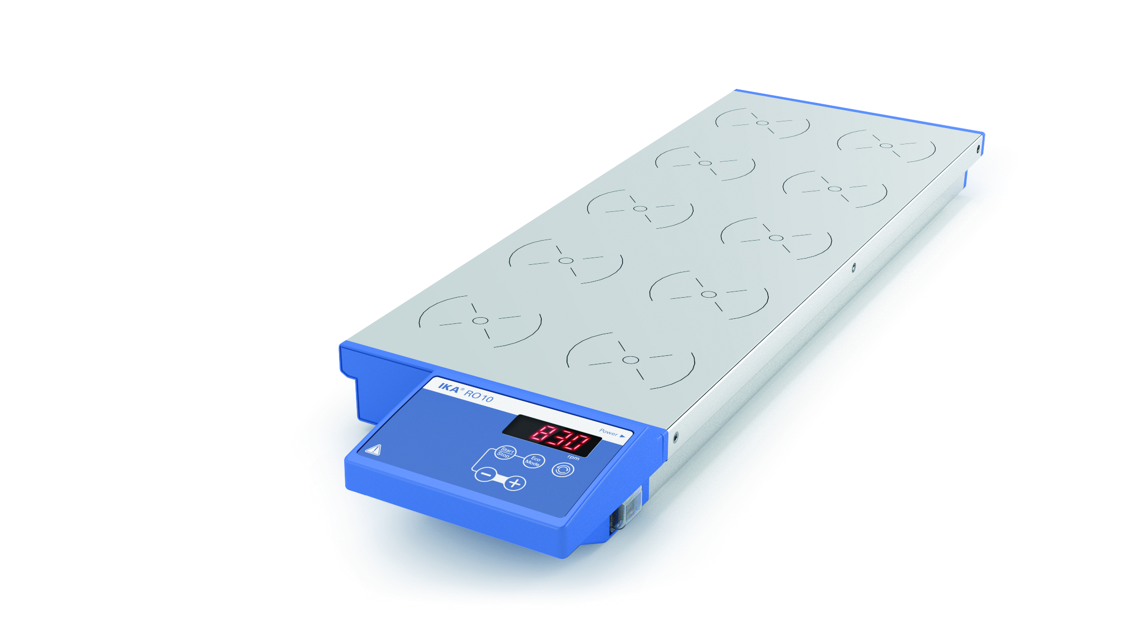 10-position digital magnetic hotplate stirrer, designed for synchronous heating and stirring. The magneticcoil technology provides noiseless and consistent stirring on all positions. The surface temperature is infinitely adjustable up to 120 °C, producing a maximum medium temperature of 70 °C (depending on the used vessel). Speed remains constant, even when load changes.