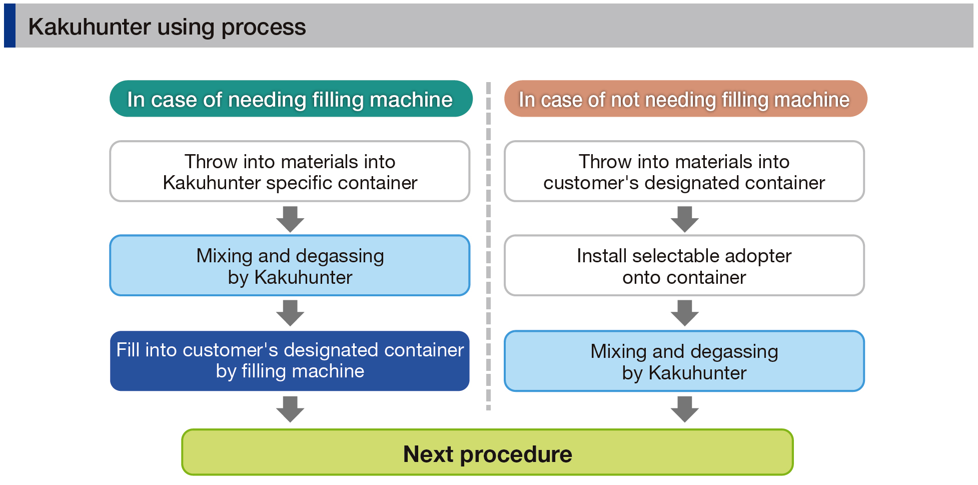 - Multiple containers can be loaded by using an adapter, and loss of material is reduced by selecting containers according to the production amount.